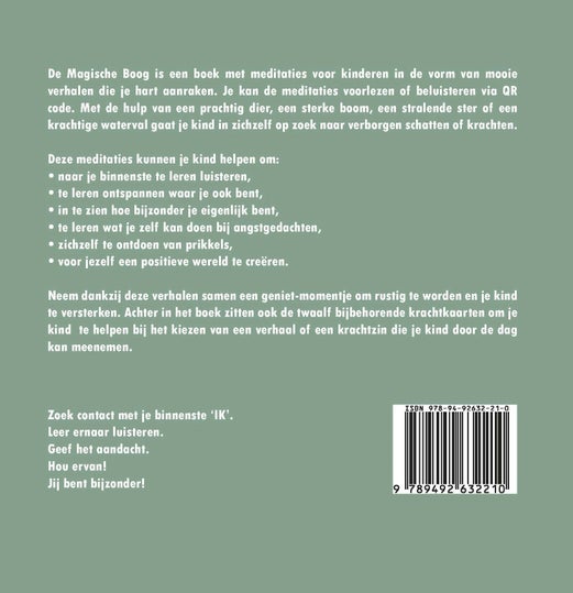 De Magische Boog is een boek met meditaties voor kinderen in de vorm van mooie verhalen die je hart aanraken. Met de hulp van een prachtig dier, een sterke boom, een stralende ster of een krachtige waterval gaat je kind in zichzelf op zoek naar verborgen schatten of krachten.